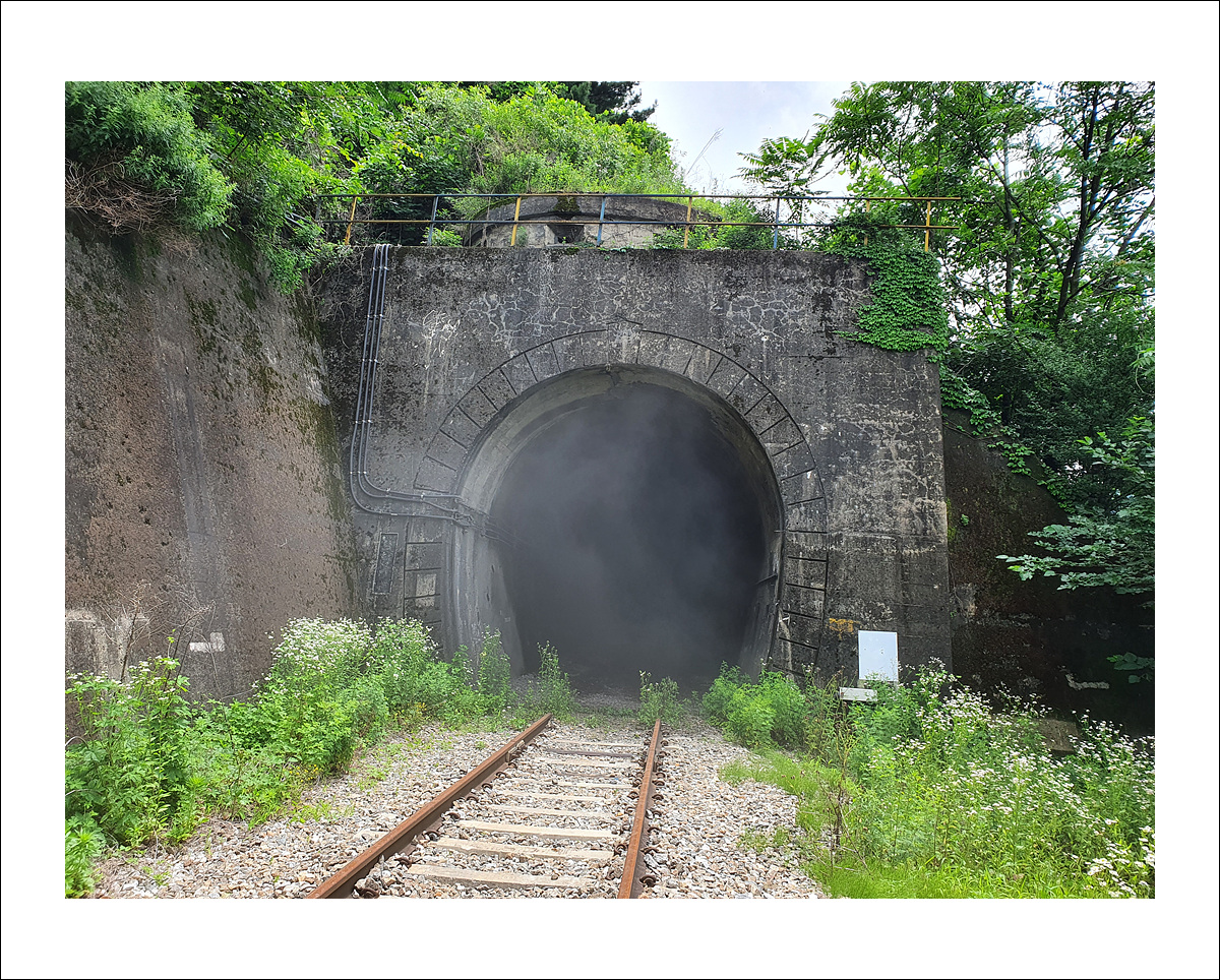 2km 가까운 어둠속 똬리굴을 약 30분 정도 걸어 빠져 나왔고요.. 기온차로 인하여 입구가 뿌옇게 보입니다.