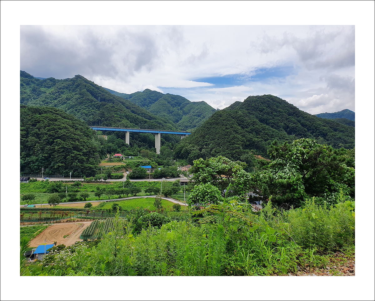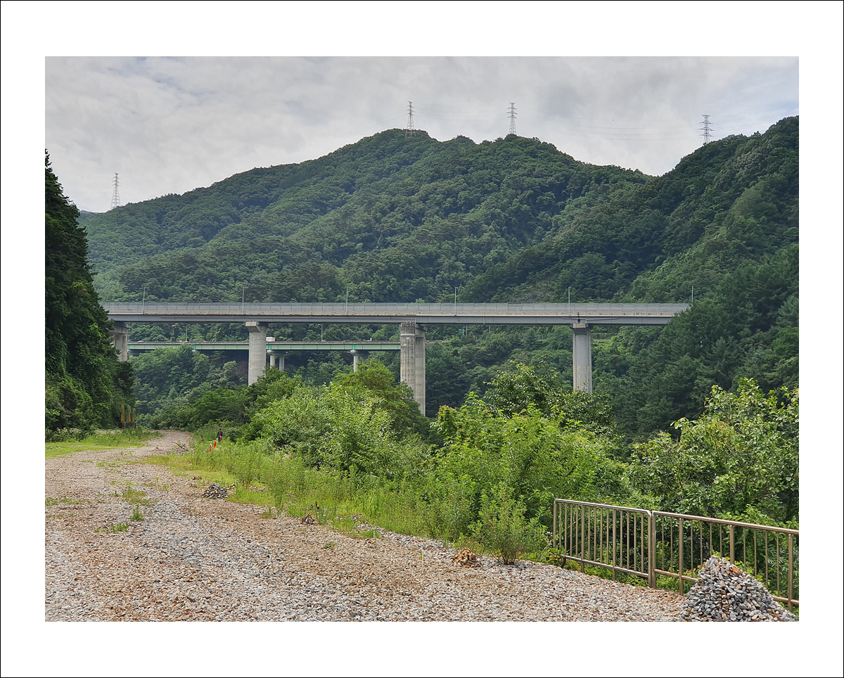 저기 높은다리에서 부터 시작하여 걸었으니 보이는 거리상 가깝지만 산속 터널을 똬리식으로 2km 정도 돌아서 나왔기에..