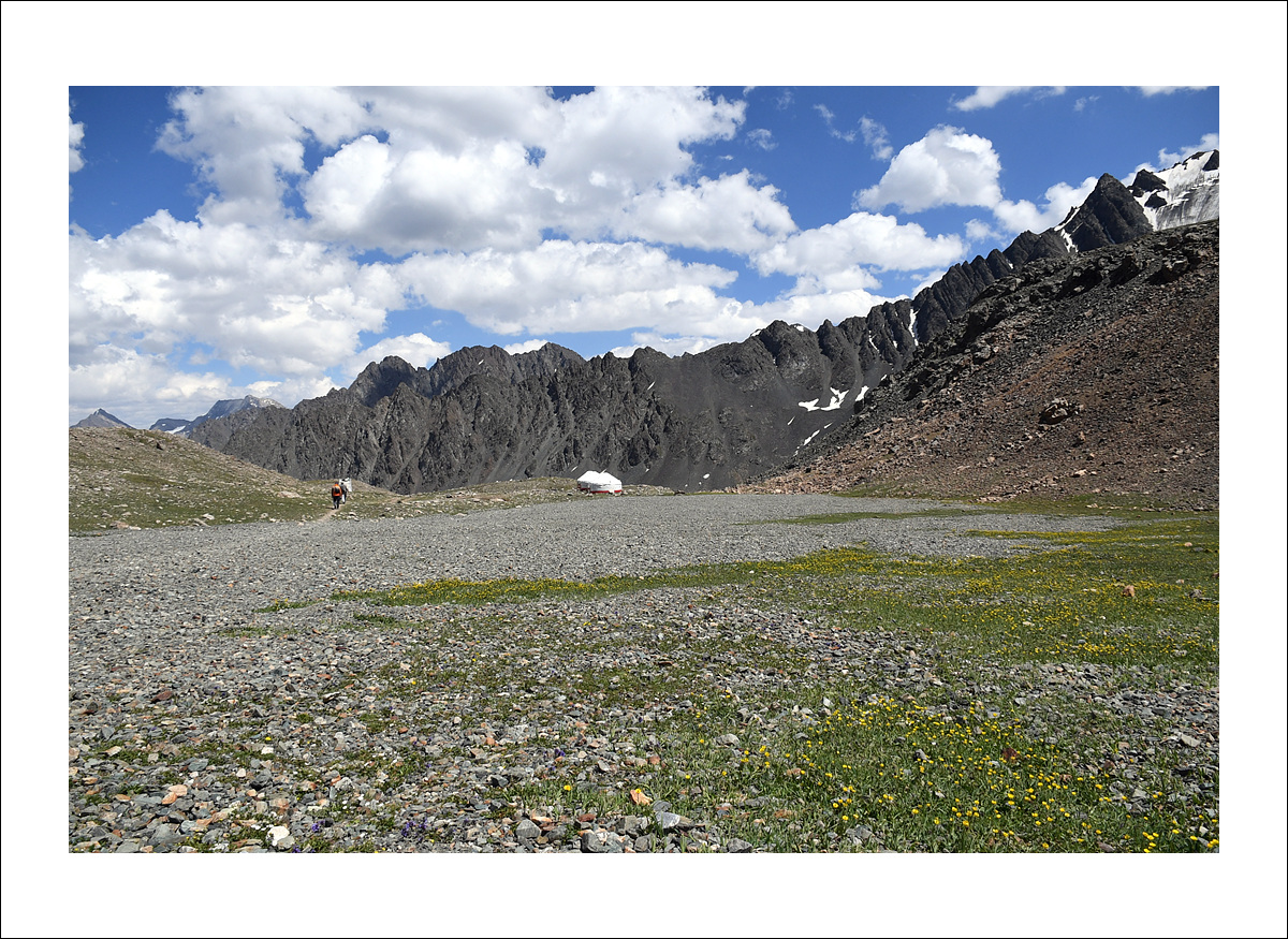 이제 저기 유르트 한채가 보이네요.. 저곳이 3600m 지점.. 우리가 점심 식사를 할 곳입니다.