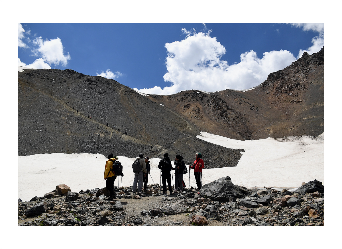 이제 잔설이 있는 구간을 지나 좌측 경사도가 제법 되는 거칠은 모래밭 길을 올라야 합니다.. 맨후미에서 걷다가 여러가지로 생각해 보니 이제는 선두로 합류해야 할것 같아 선두 그룹으로 따라 붙었습니다.. 결국 이렇게 하지 않았으면 저도 오늘 정상을 오르지 못하고 하산을 해야만 했었겠지요^^. 탁월한 선택 이었습니다^^.ㅎ.