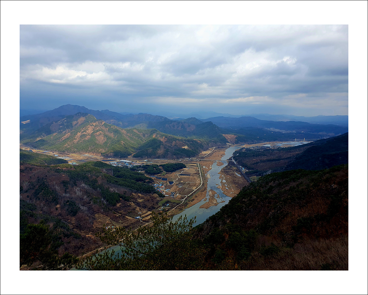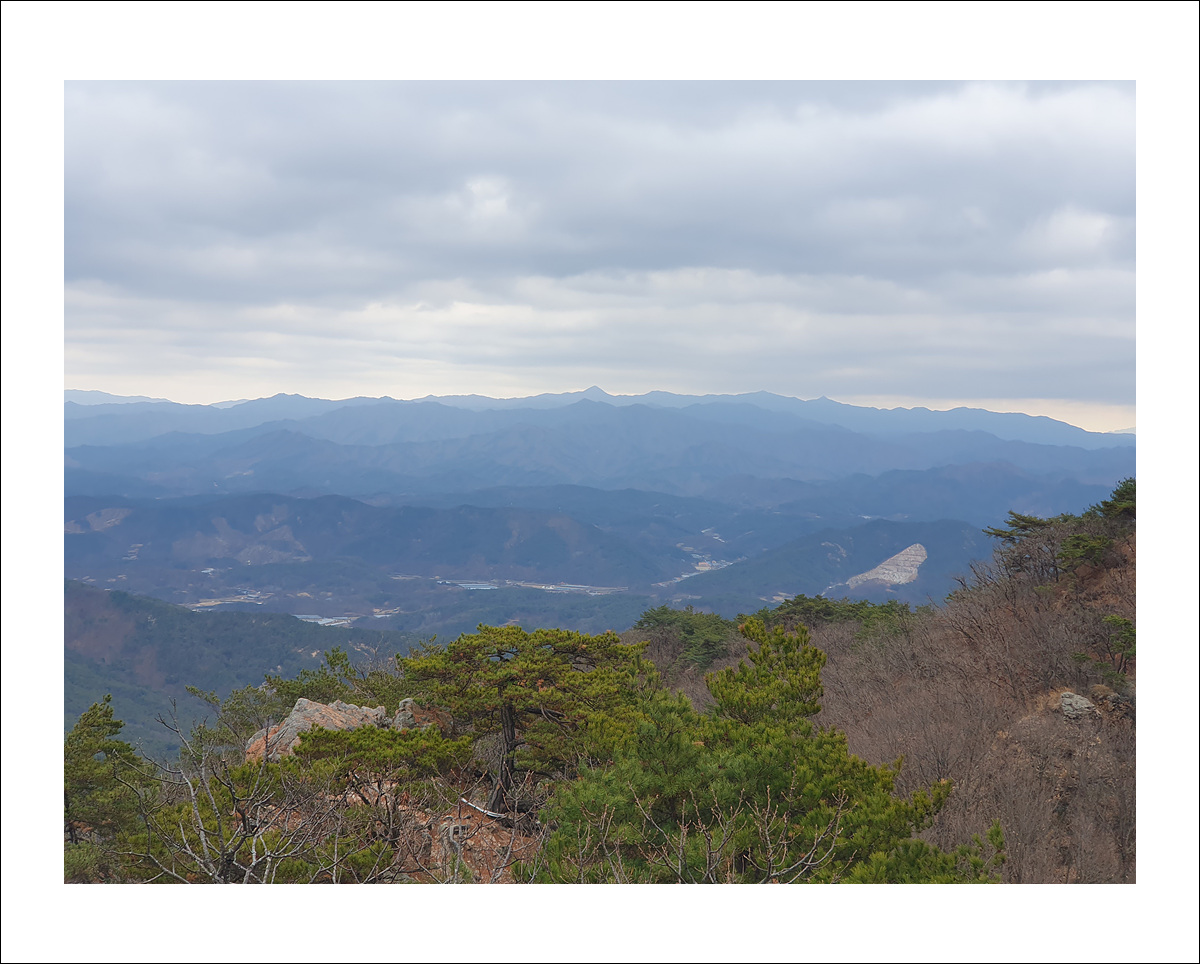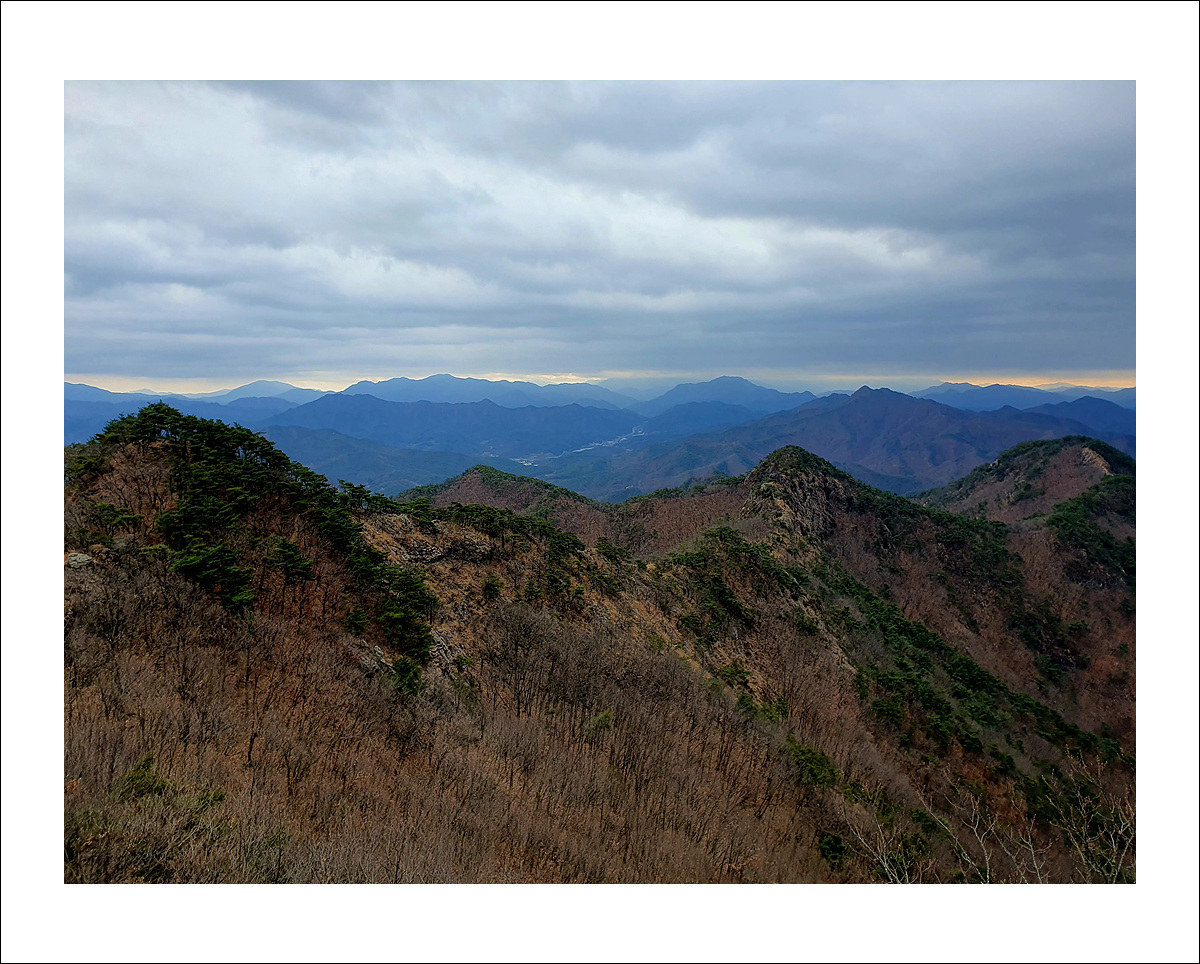 중앙에 뽀족한 봉이 민주지산으로 이어지는 각호산으로 보이고...