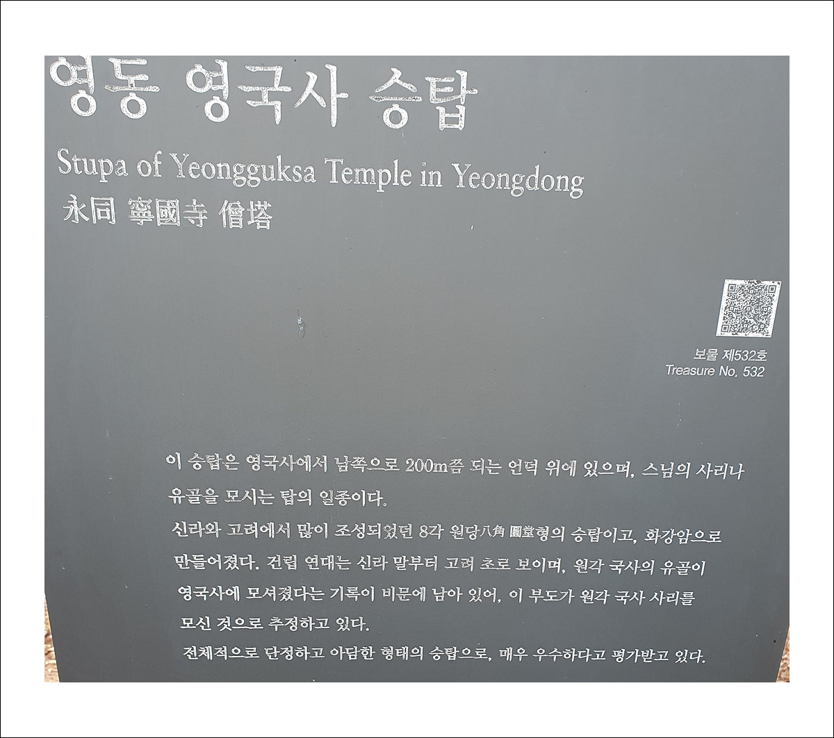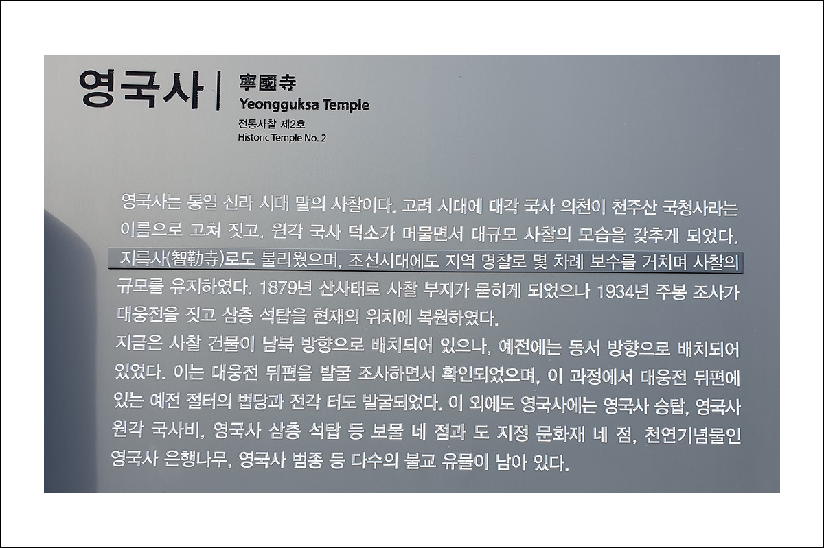 영국사에는 원각국사비(보물 제534호),영국사 승탑(보물 제532호), 영국사 삼층석탑(보물 제533호), 망탑봉 삼층석탑(보물 제535호), 영국사 후불탱화(보물 제1397호) 등 보물급 유적이 6점이나간직하고 있는 전통적인사찰이기도 합니다.