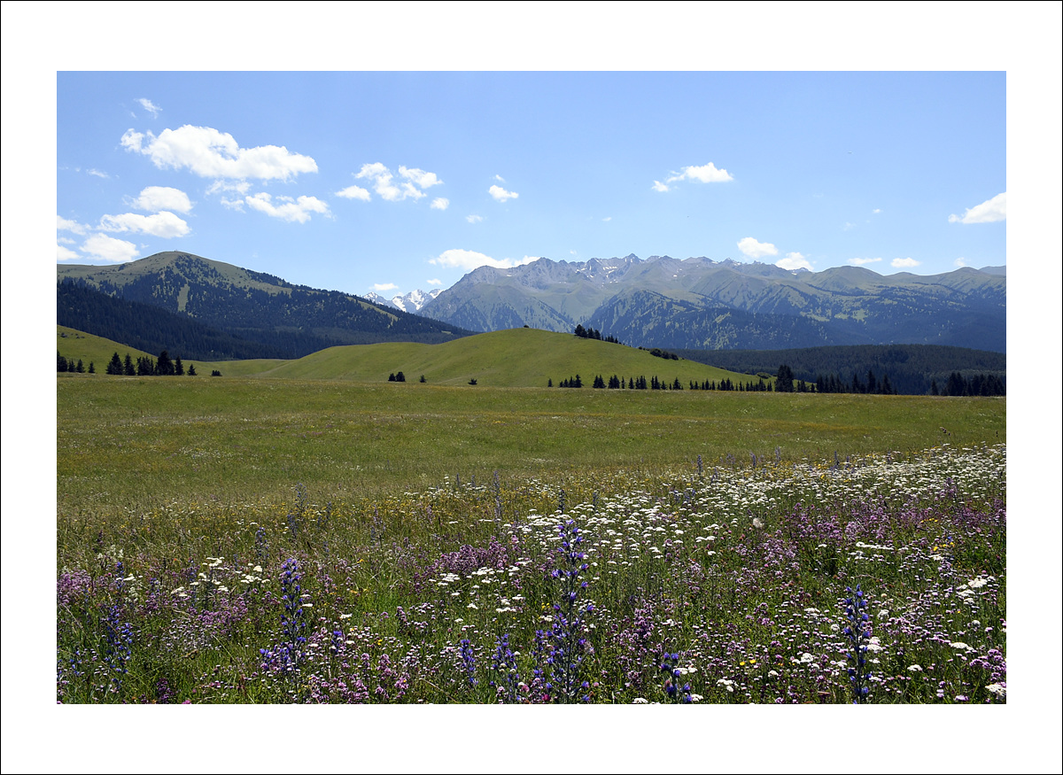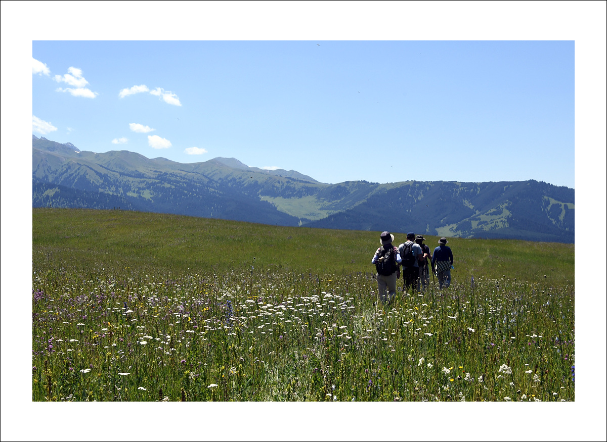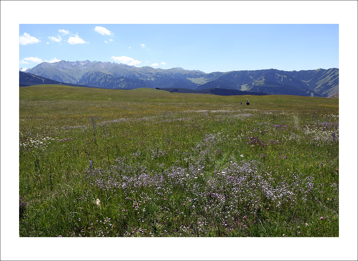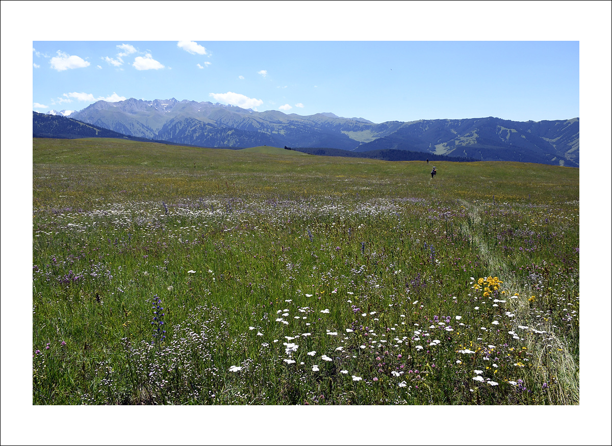 오늘은 트래킹 3일중 마지막 일정입니다. 원래는 오전 일정으로 온천욕과 휴식이었는데, 갑자기 일정을 변경하여 아침 식사후 바로 특수차량으로 이동(우리가 첫날 걸어왔던 14km 산길을 이번에는 차를 타고 2시간 정도 걸려 내려 갑니다) 하여 오후 일정 이었던 콕투스 트래킹을 진행 하였습니다.. 콕투스 트래킹은 천산 소나무숲과 자작나무 길을 지나는, 야생화 만발한 초원길로 약 11km 산길을 진행 합니다.. 출발 고도는 2000m, 최고 고도는 약 2500m 되더군요. 하산 지점도 약 2000m 정도 되었고요.. 완만하게 오르는 산길에 넓게 펼쳐진 초원에... 꽃길만 걸었던 하루 일정 이었습니다..