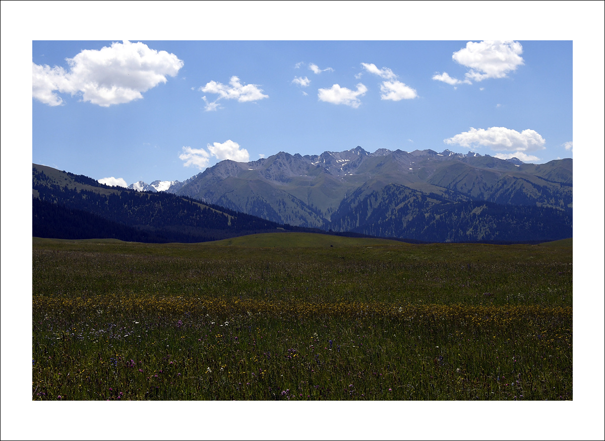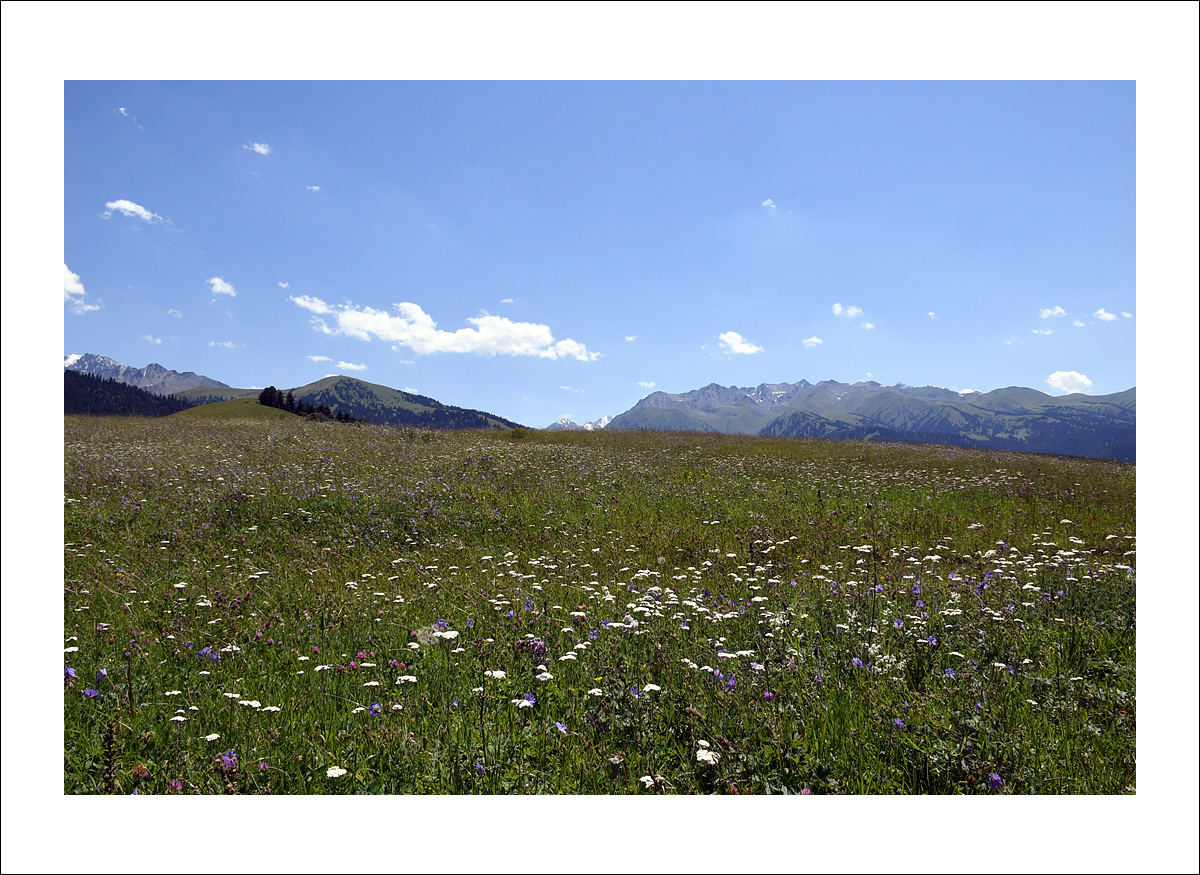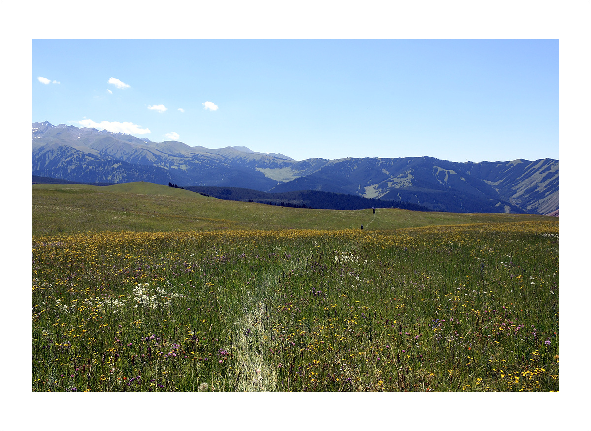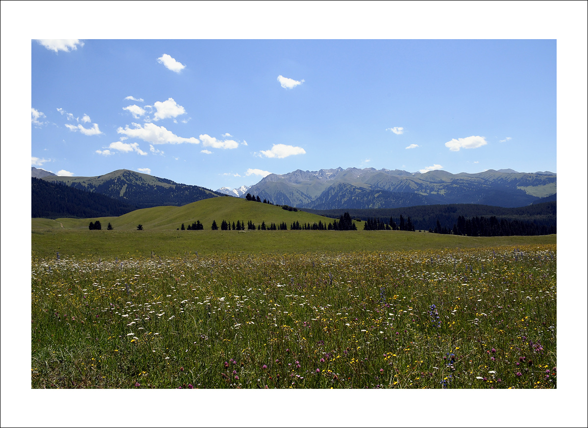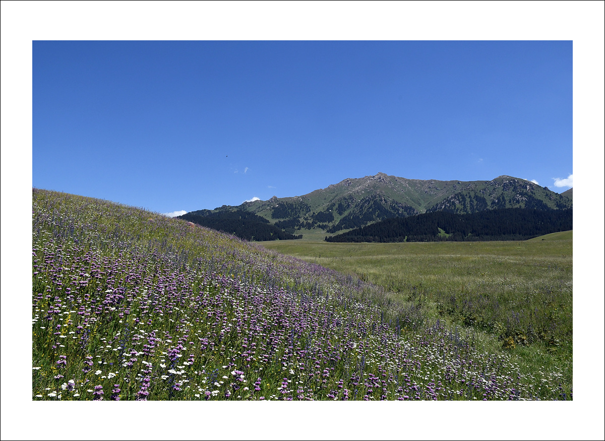 오늘은 트래킹 3일중 마지막 일정입니다. 원래는 오전 일정으로 온천욕과 휴식이었는데, 갑자기 일정을 변경하여 아침 식사후 바로 특수차량으로 이동(우리가 첫날 걸어왔던 14km 산길을 이번에는 차를 타고 2시간 정도 걸려 내려 갑니다) 하여 오후 일정 이었던 콕투스 트래킹을 진행 하였습니다.. 콕투스 트래킹은 천산 소나무숲과 자작나무 길을 지나는, 야생화 만발한 초원길로 약 11km 산길을 진행 합니다.. 출발 고도는 2000m, 최고 고도는 약 2500m 되더군요. 하산 지점도 약 2000m 정도 되었고요.. 완만하게 오르는 산길에 넓게 펼쳐진 초원에... 꽃길만 걸었던 하루 일정 이었습니다..
