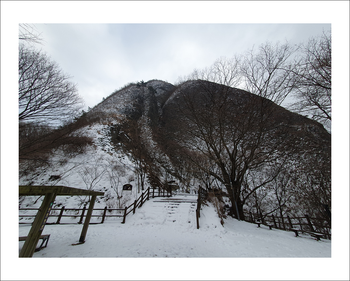 친구를 다시 만나 아침을 먹고.. 북부 마이산을 잠시 걸었습니다.. 북부 마이산 오름길은 계속 계단 오름길.. 북사면이라 눈이 녹지 않았어요.