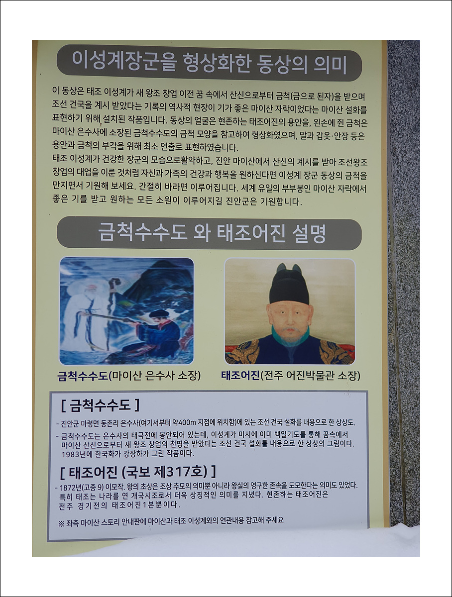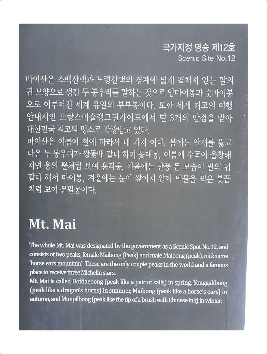 덕유산 산행후 친구가 일하고 있는 진안군으로 이동 1박을 하며, 마이산 탑사를 이틀에 걸쳐 천천히 둘러 보고 왔어요^^. 카메라는 애마에 두고 스마트폰만 들고 가볍게 걸으며 담아 보았네요. 겨울이라 통제되어 암마이봉 정상 까지 오를수 없었지만.. 아주 오래전 1990년대 초반에 홀로 처음 찾아 갔었고 그후로도 두번 더 갔었지만, 이번에 친구 덕분에 확실히 마이산을 머리에 넣고 왔어요^^. 벚꽃이 전국에서 가장 늦게 4월 중순경에 핀다네요.. 그때 다시 와서 오래된.. 기억에도 없는 암마이봉 정상을 다시 올라 보아야 겠어요^^.