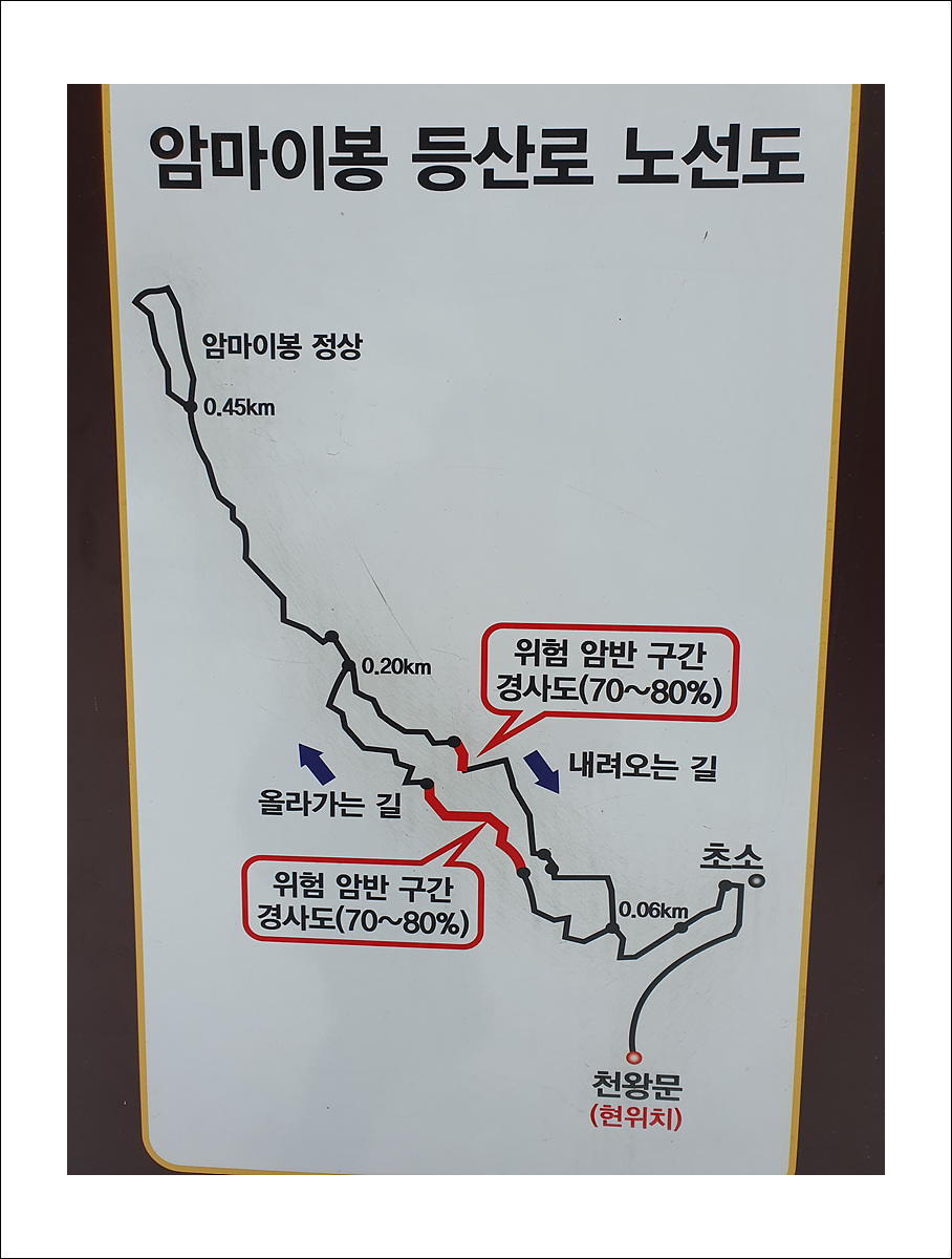 우리가 올라온 안부가 천왕문 이군요... 다음에 오면 암마이봉을 올라 보아야지^^.